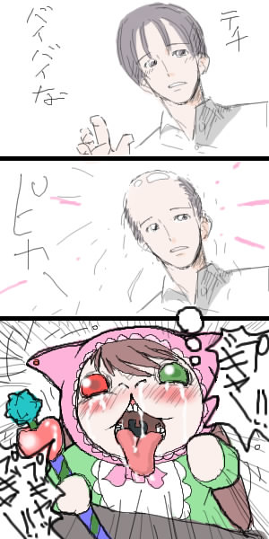 そして、テチは余りの哀しさに自虐的になり、先程戻した吐瀉物を手に取り、再び口に入れたり